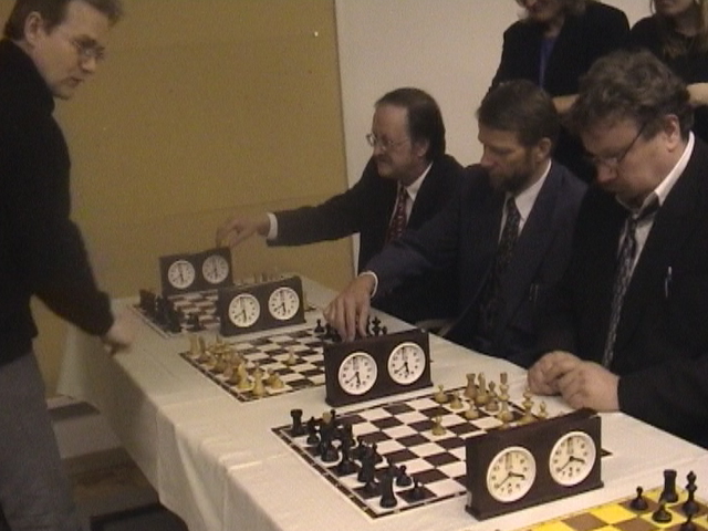 Yrjö antoi simultaaniesityksen pelaamalla yhtäaikaa kahdeksaa muuta pelaajaa vastaan. Aikaa kelloihin laitettiin 20 minuuttia per pelaaja, joten etenkin Yrjölle oli odotettavissa aikapulia.